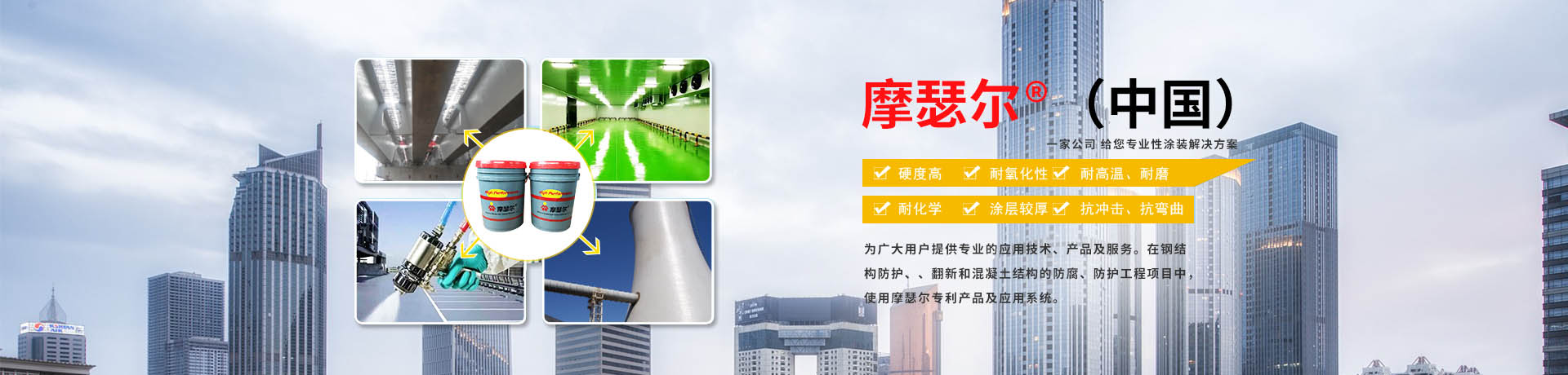 該品牌已經成為先進產品與實際應用解決方案的代名詞。在鋼結構防護、翻新和混凝土結構的防腐、防護工程項目中,使用摩瑟爾建筑工業防護專利產品及應用系統,我們將確保在您的工程項目中:減少表面處理時間(Preparation time)、減少施工時間(Application time)、減少設備停工時間(Downtime)、延長設備使用壽命(Lifetime)。 摩瑟爾?(MOSER)鋼結構防護產品及應用系統,在防銹、高熱、磨損、化學侵害和腐蝕性環境防護方面具有施工最為簡易、防護最為長效、成本最為經濟的特性。